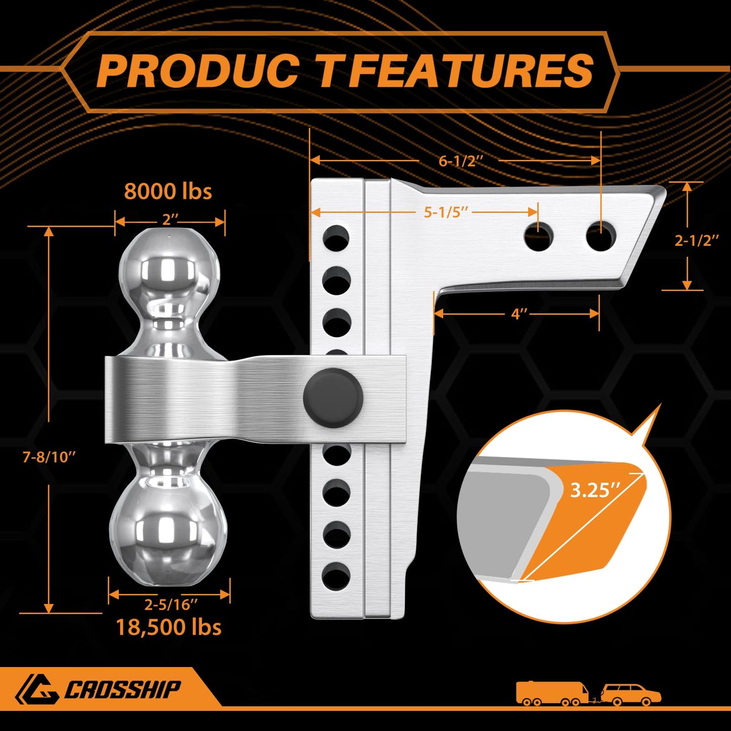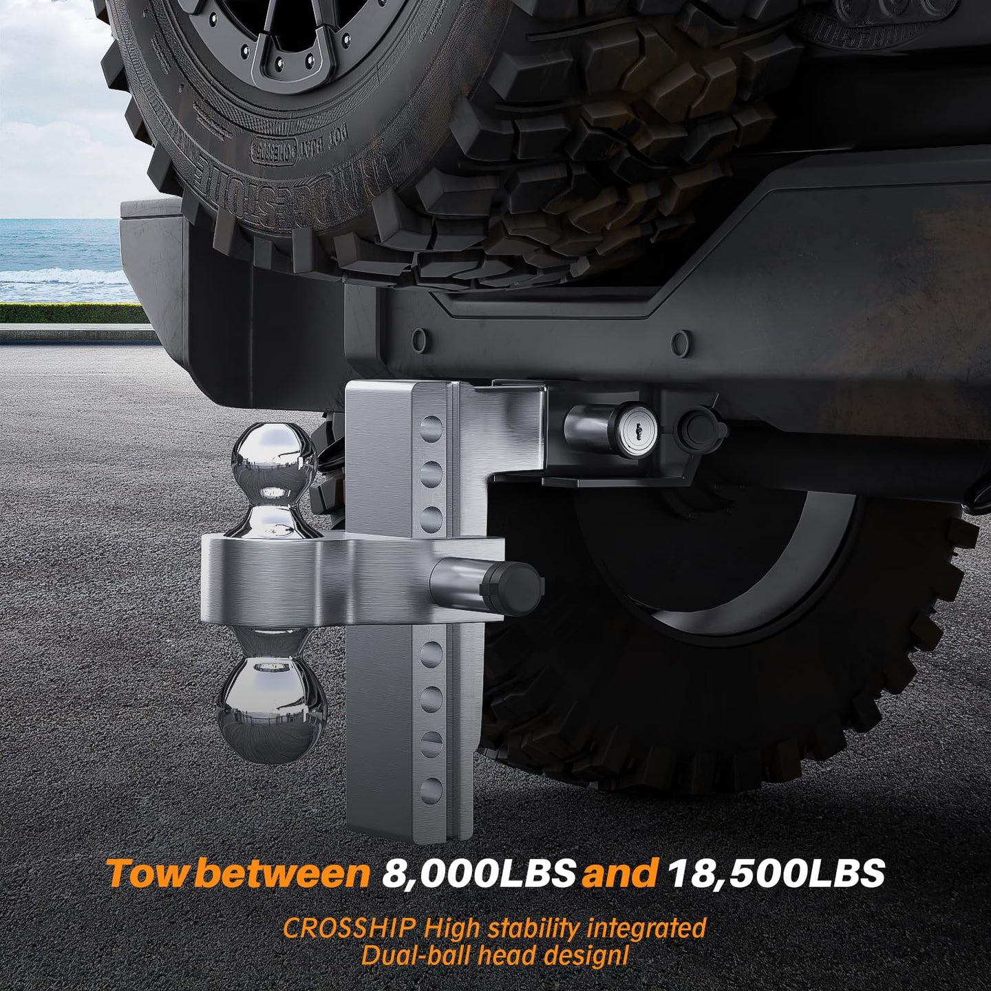- 🚙【Dual-Balls Integrated Design】Integrated hitch balls allow for supreme towing capacity, after professional laboratory evaluation, the 2-inch ball is rated for a capacity of 8000 lbs, and the 2-5/16-inch ball for 18,500 lbs, so you can haul heavier loads such as heavy trucks or RVs with ease. ATTENTIONS: Do not exceed the capacity of hitch receivers or towed vehicles, since the car vehicle and trailer track independently, a slight wobble is normal.