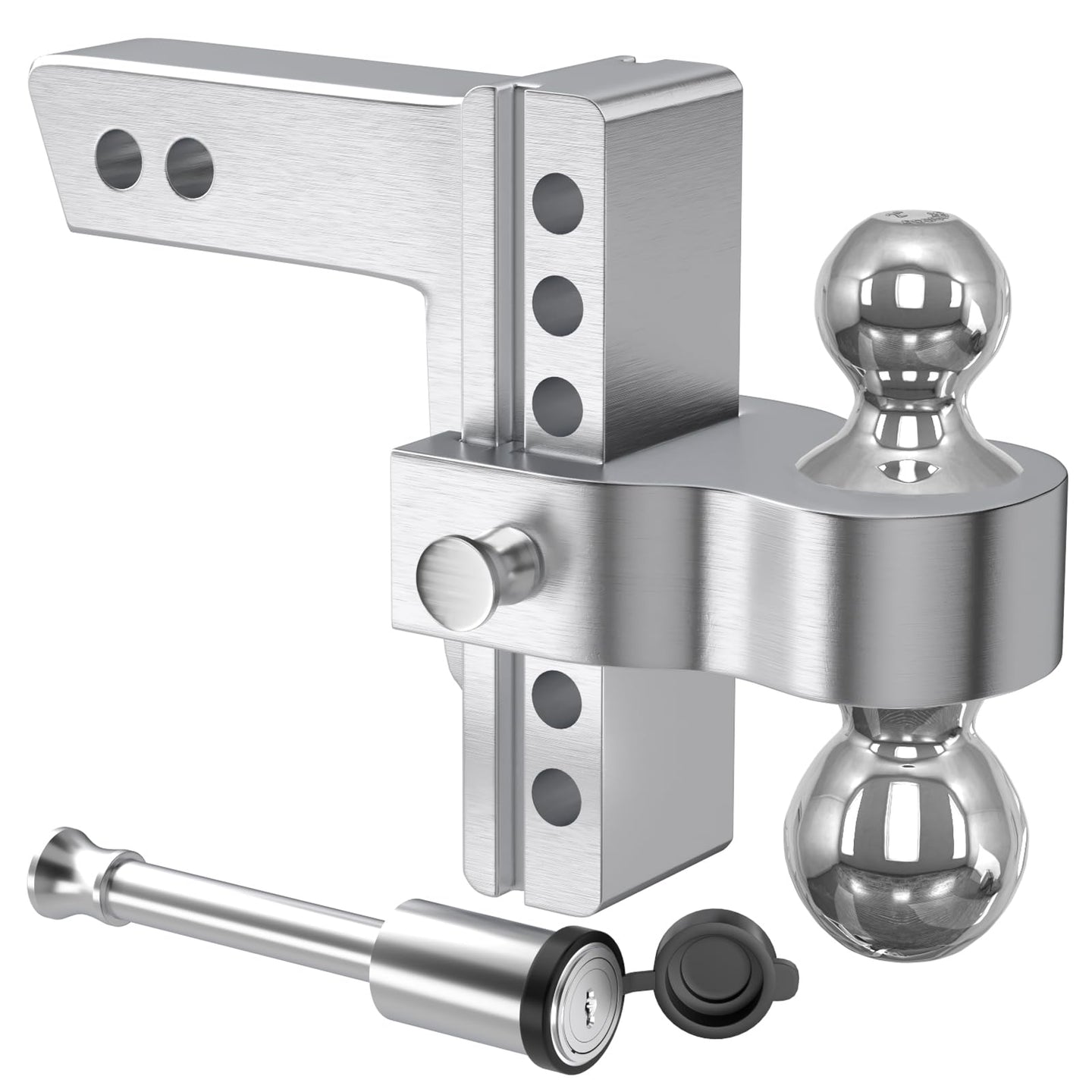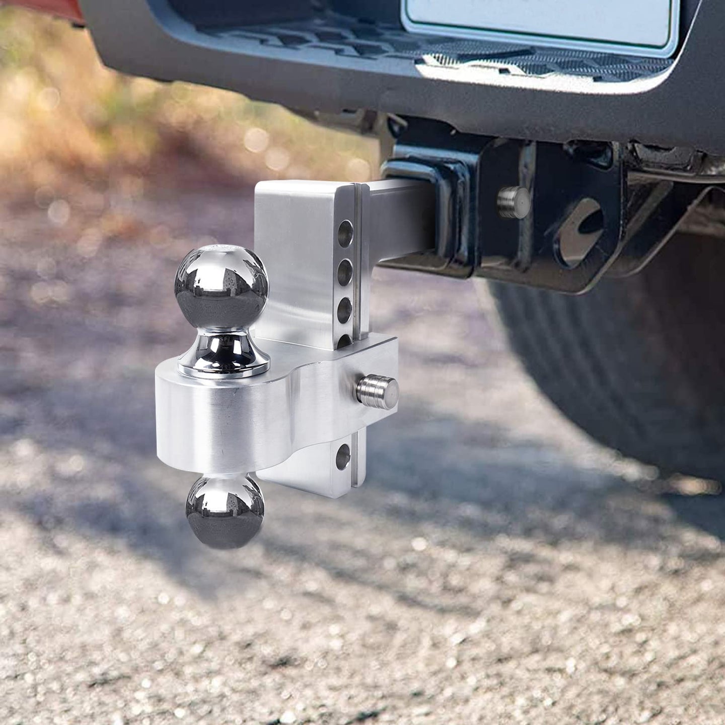 - 🚙【Adjustable Ball Mount】This ball hitch enables precise and rapid 6" drop & 6" rise can be easily adjustable for optimal towing to maintain vehicle departure angle, ensuring a level and stable towing configuration. Height adjustment to accommodate trailers of different heights, you get the perfect fit for any trailer height with no need to ever change hitches for different vehicles.